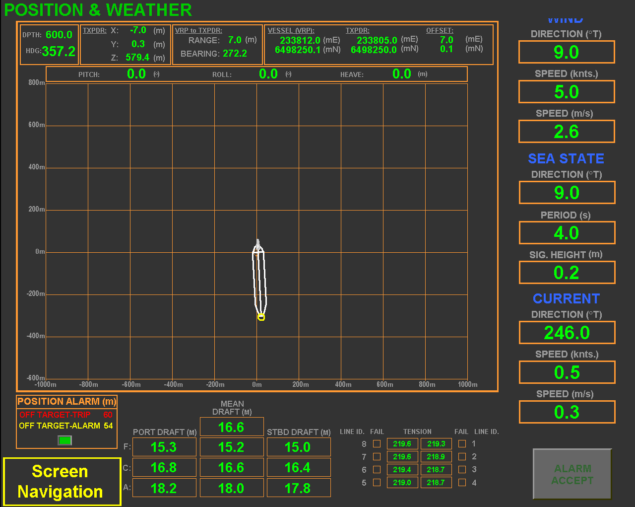 This allows trainees to practise maintaining control during significant metocean events or equipment problems.