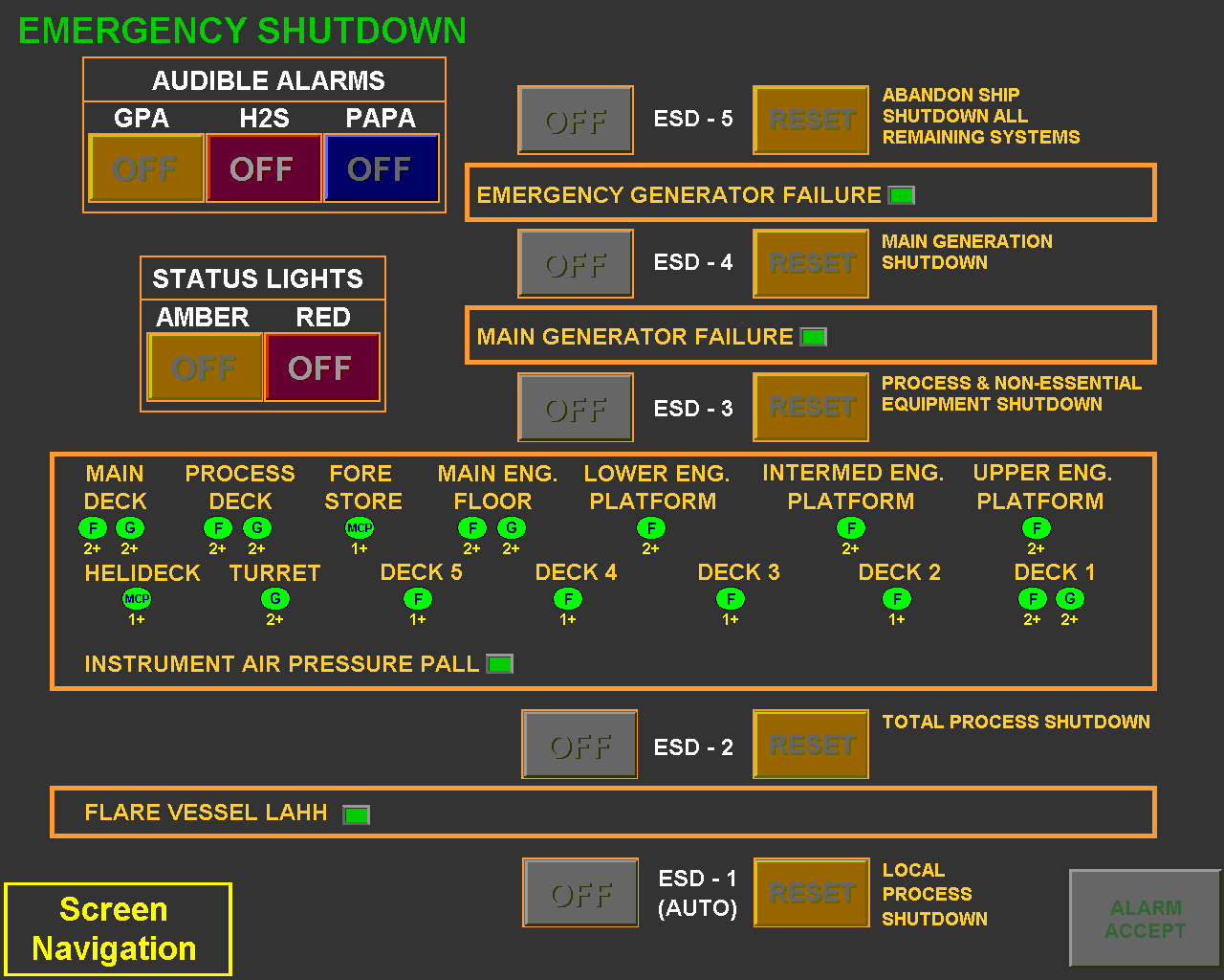 The system provides a highly realistic training experience across core FPSO systems and scenarios including :