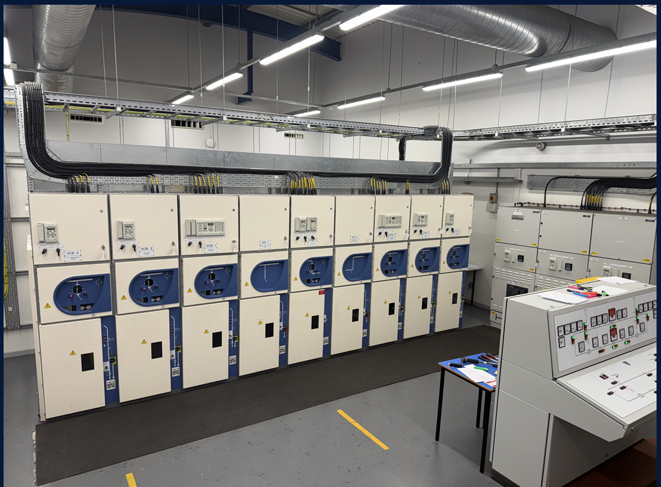 Interactive exercises replicate HV systems with interlocks, relays, instruments, and test modes — without energised hardware. No risk, no hardware failures, no downtime.
